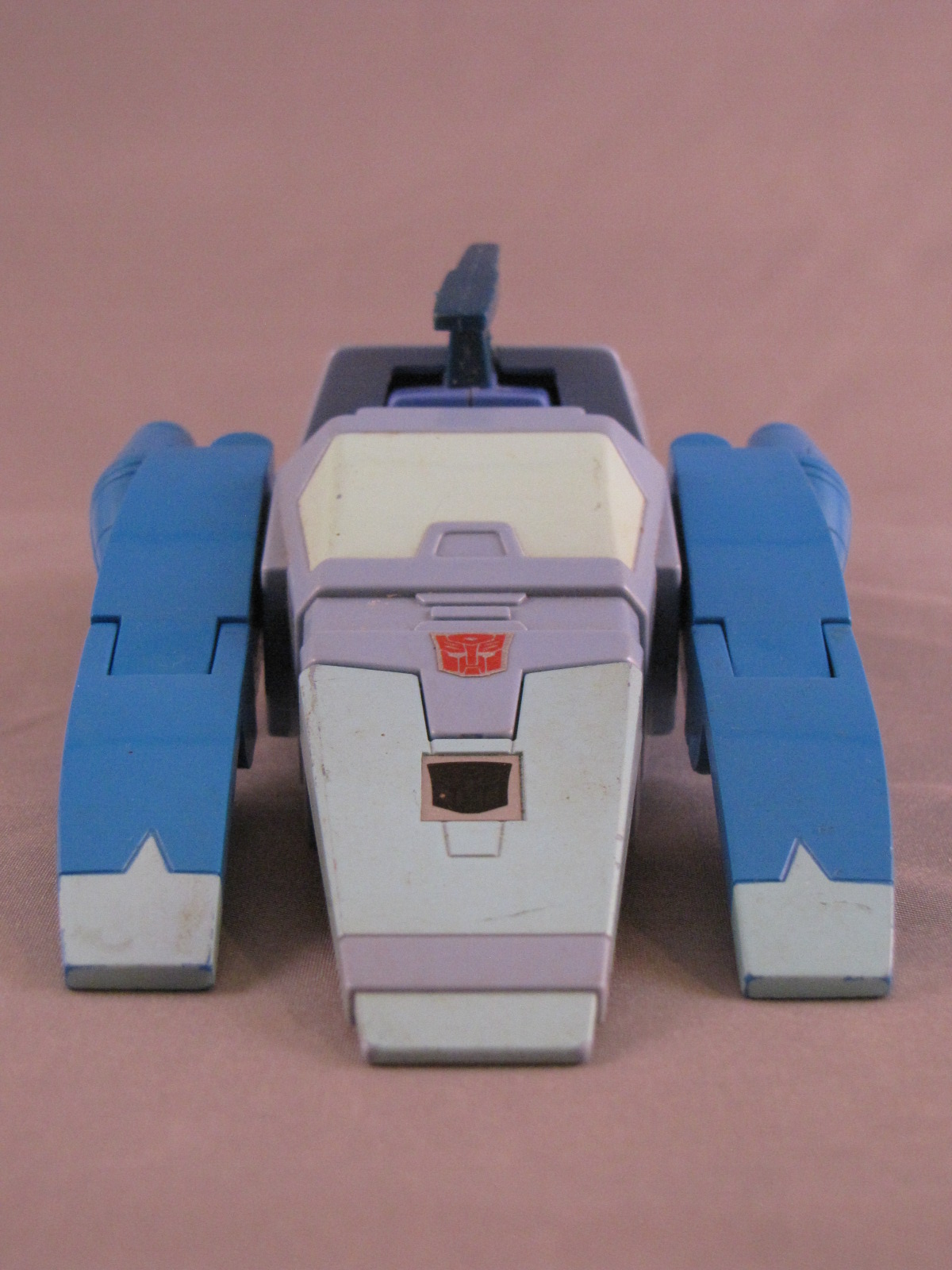 Abilities: In robot mode, he carries an electro-laser that reverses the polarity of an enemy robot's microcircuits and leaves him motionless. His humanoid mode is built for speed - and he looks longer and leaner than most Autobots. When he's in his vehicular mode, he is a racing car that routinely breaks the speed of sound and then some, leaving a trailing image as it hurtles across distances.