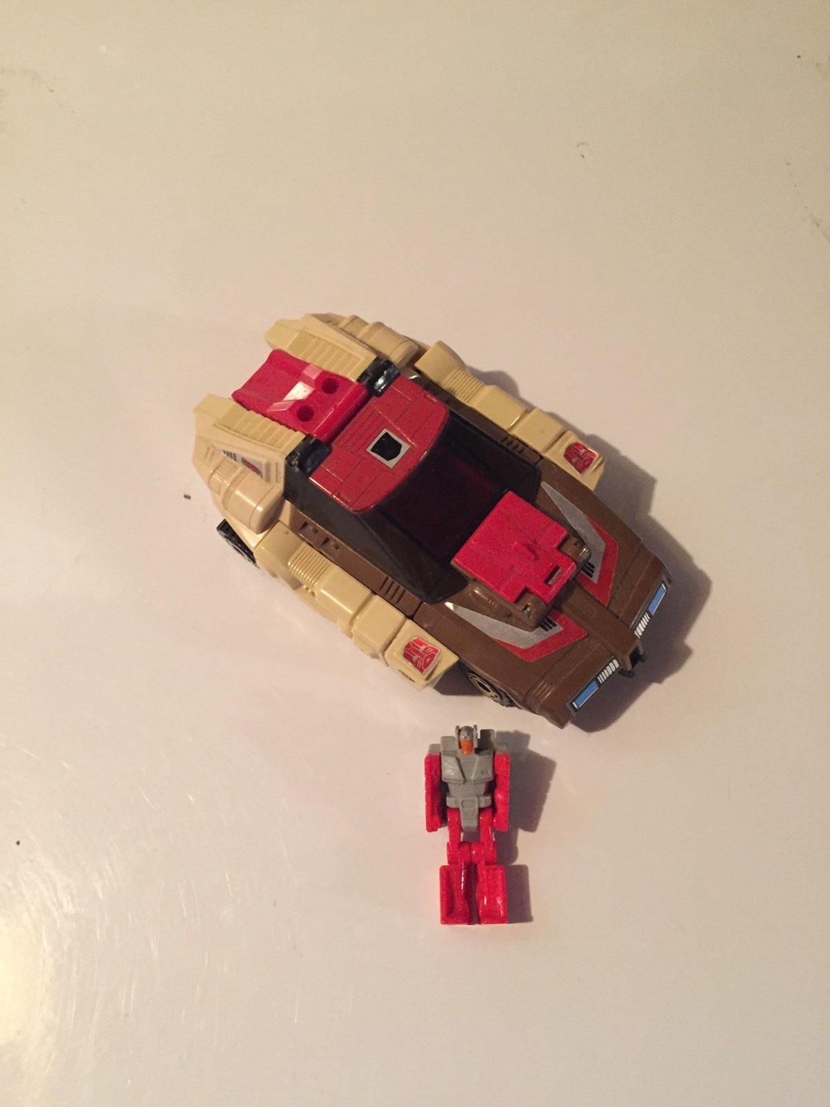 Spent several thousand years cruching numbers at Cybertron's Insitute for Higher Programming before a Decepticon attack reduced it to a pile of smoking microchips. Binary-bonded to Stylor, an egotistical Nebulan more concerned with personal appearance than warfare. In car mode, maximum speed: 478 mph. Range: 630 miles. Hood-mounted infra-red range finder automatically targets roof-mounted dual lasers. | |||||||