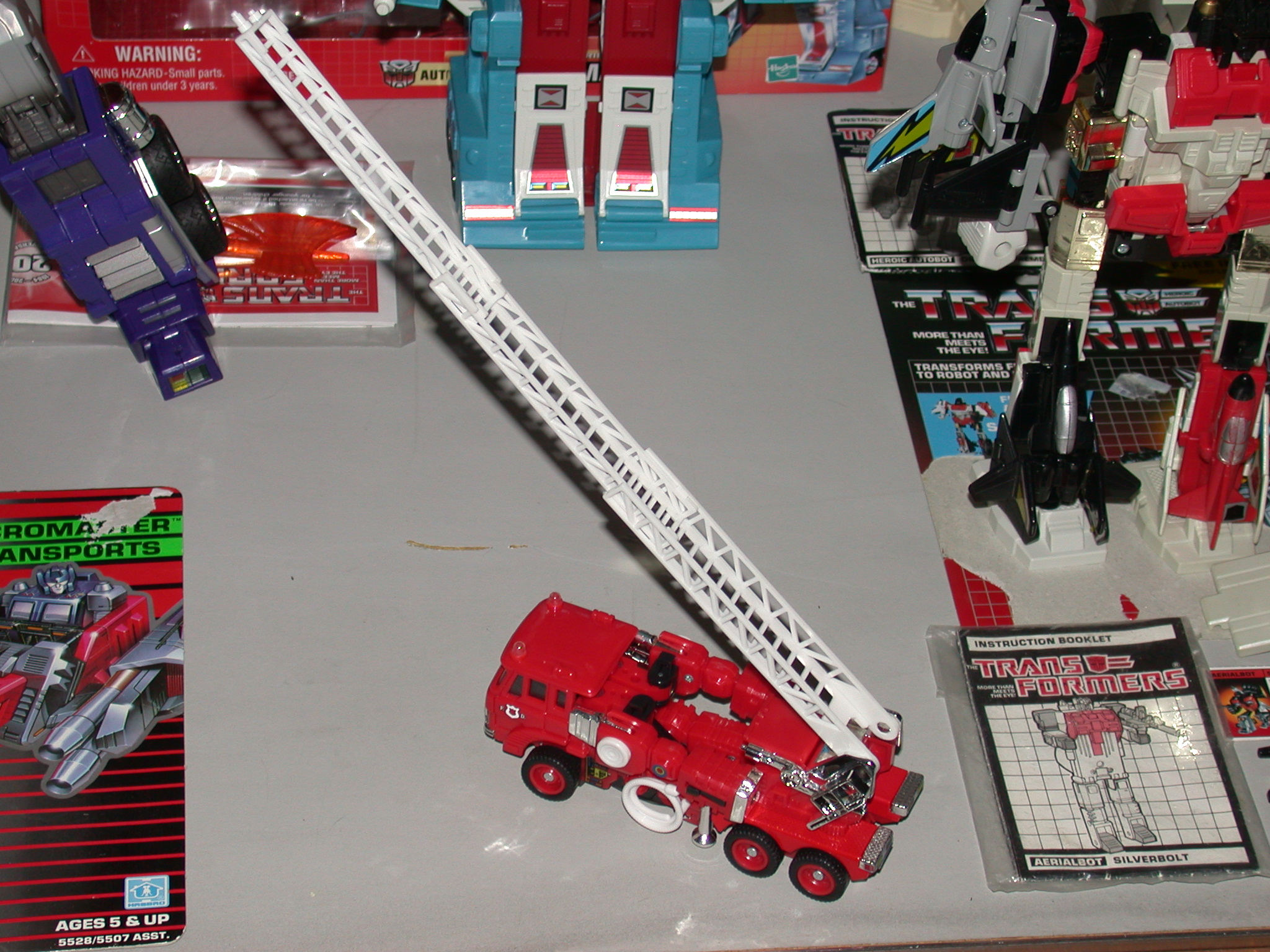 Thought it would be cool to throw in a picture of his extremely long extension latter. He could probably reach the shoulders of the 20th Anniversary Prime with that!! HAHA**