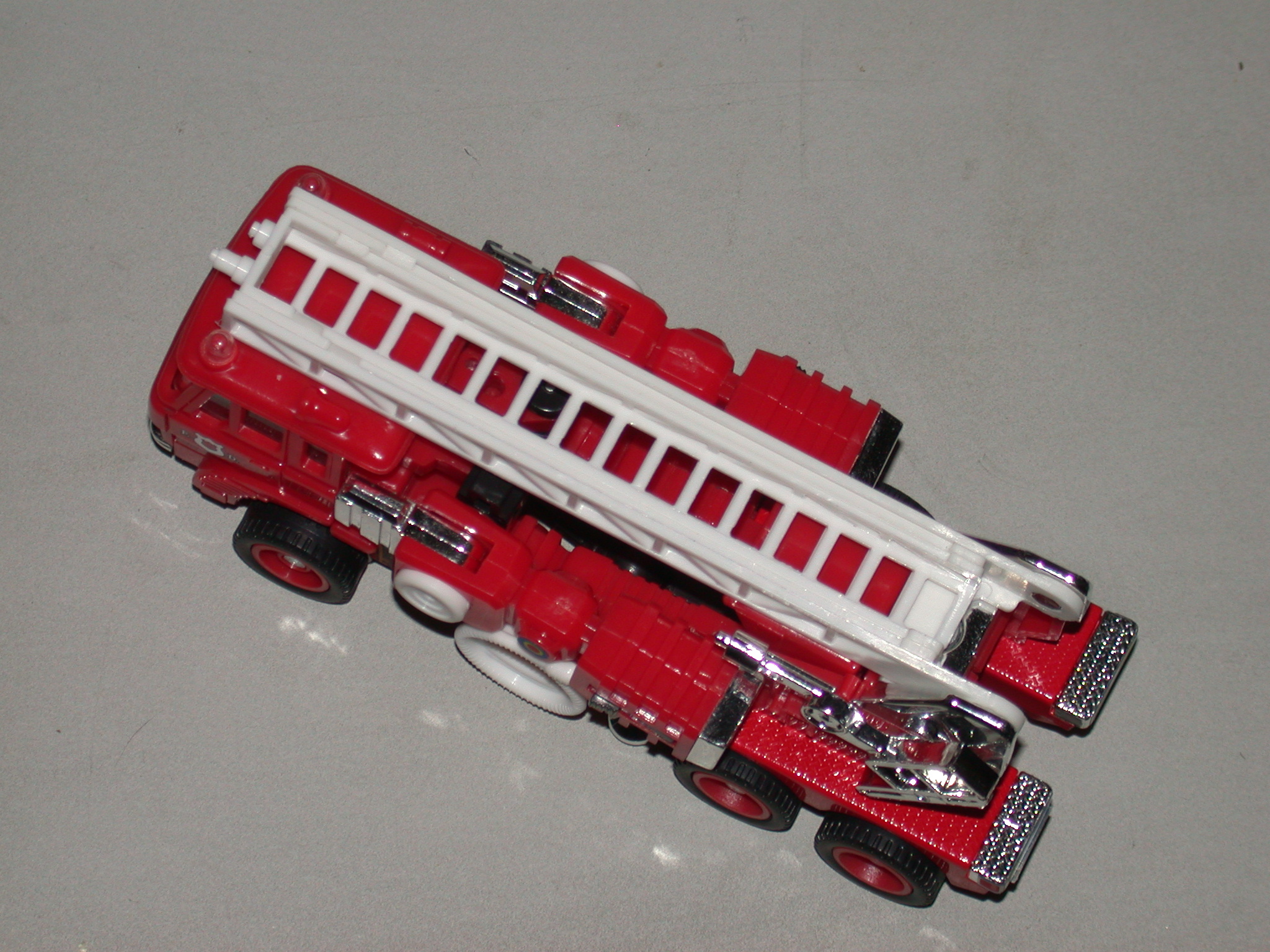 "The hotter things get, the better I like it!"... not only fires, but battle too. Often distracted from performing his job to engage in combat. Can do anything Earth fire trucks can in vehicular mode. Great strength... ceramic-plated armored skin can take up to 8000 degrees Celcius. Extinguisher rifle shoots flame-suppressing foam and an energy dampening beam to counter other beams. Forearms shoots missiles. Doesn't follow orders well, not very mobile as robot. | |||||||