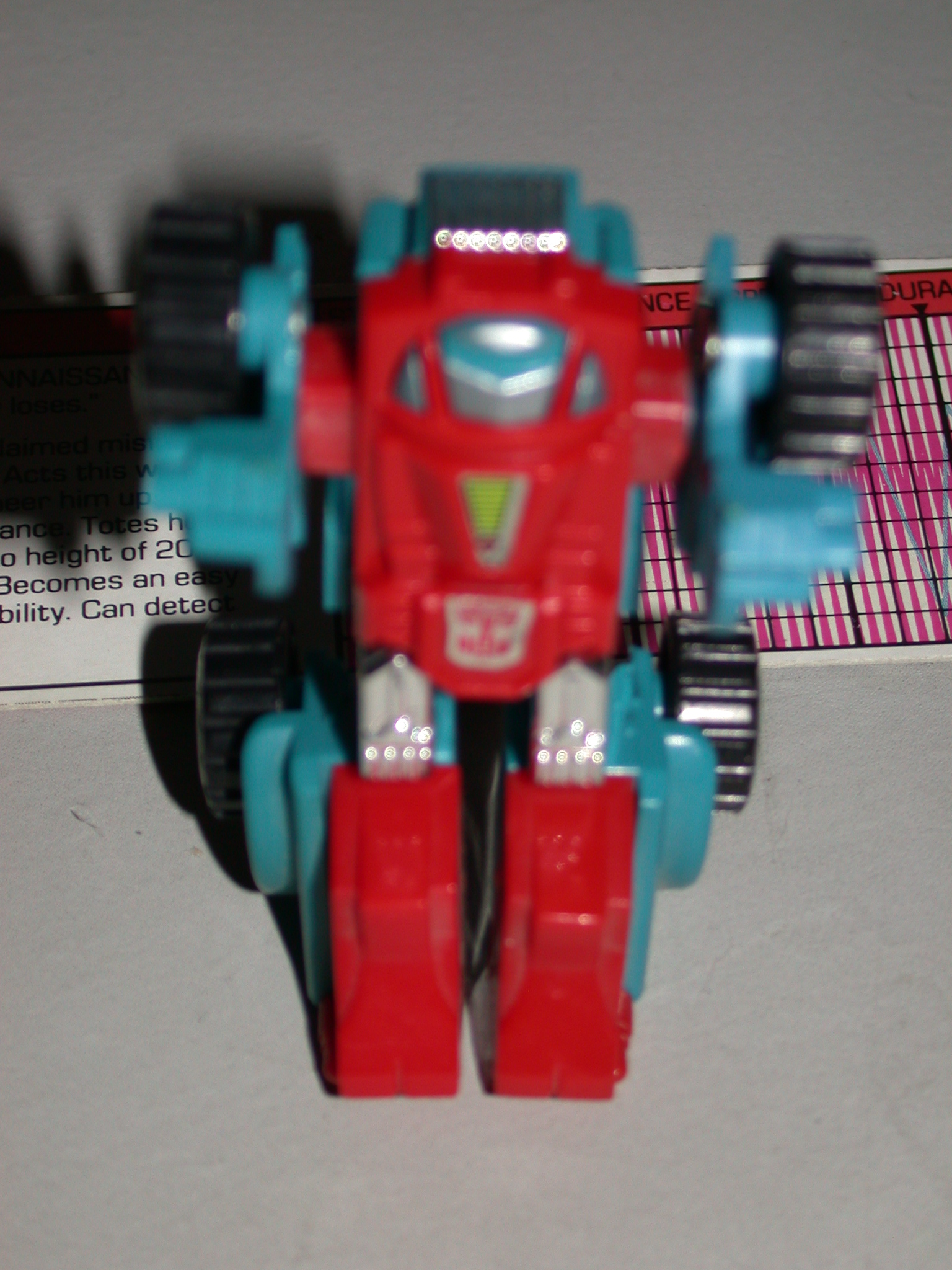 Profile:A bold and daring soldier. Often breaks away from cargo-hauling missions to join his fellow Autobots on the battlefield. A tactical genius on the front line. Trailer converts to turbo-boosted, supersonic fighter jet armed with wing-mounted, double-barrelled machine guns. Laser guided, lock-target scanners provide pinpoint firepower. Capable of reaching speeds in excess of Mach 2. Also equipped with hydrofoil capabilities.