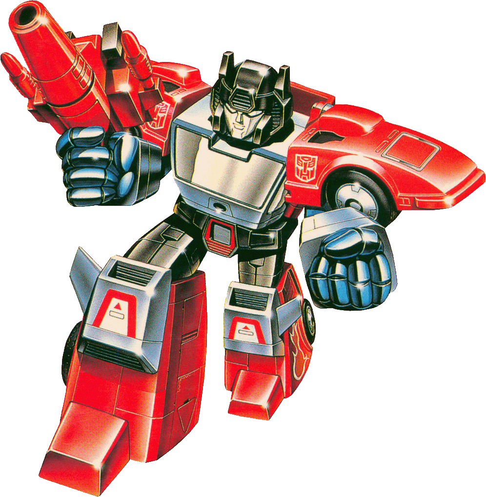 Abilities: Peacemaker is bio-engineered to transform into a stereophonic sonic blaster. His maximum power output is an audio module-shattering 160 decibels, enough to splinter a cubic yard of solid steel into shrapnel. Pointblank can transform into a rocket-powered ground vehicle, with a maximum speed of 320 mph and a range of 800 miles. In both robot and vehicle modes, Pointblank can wield weapon mode Peacemaker.