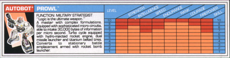 ** Prowl is an Actionmaster I got in a lot from a local friend in December 2015. He came complete with Prowl, his Turbo Cycle, Shield/Gas Tank Cover, the Left and Right Engine Intake, Small cannon and two missles. I admit I have had no attachment to him as I really was never into ActionMasters...**