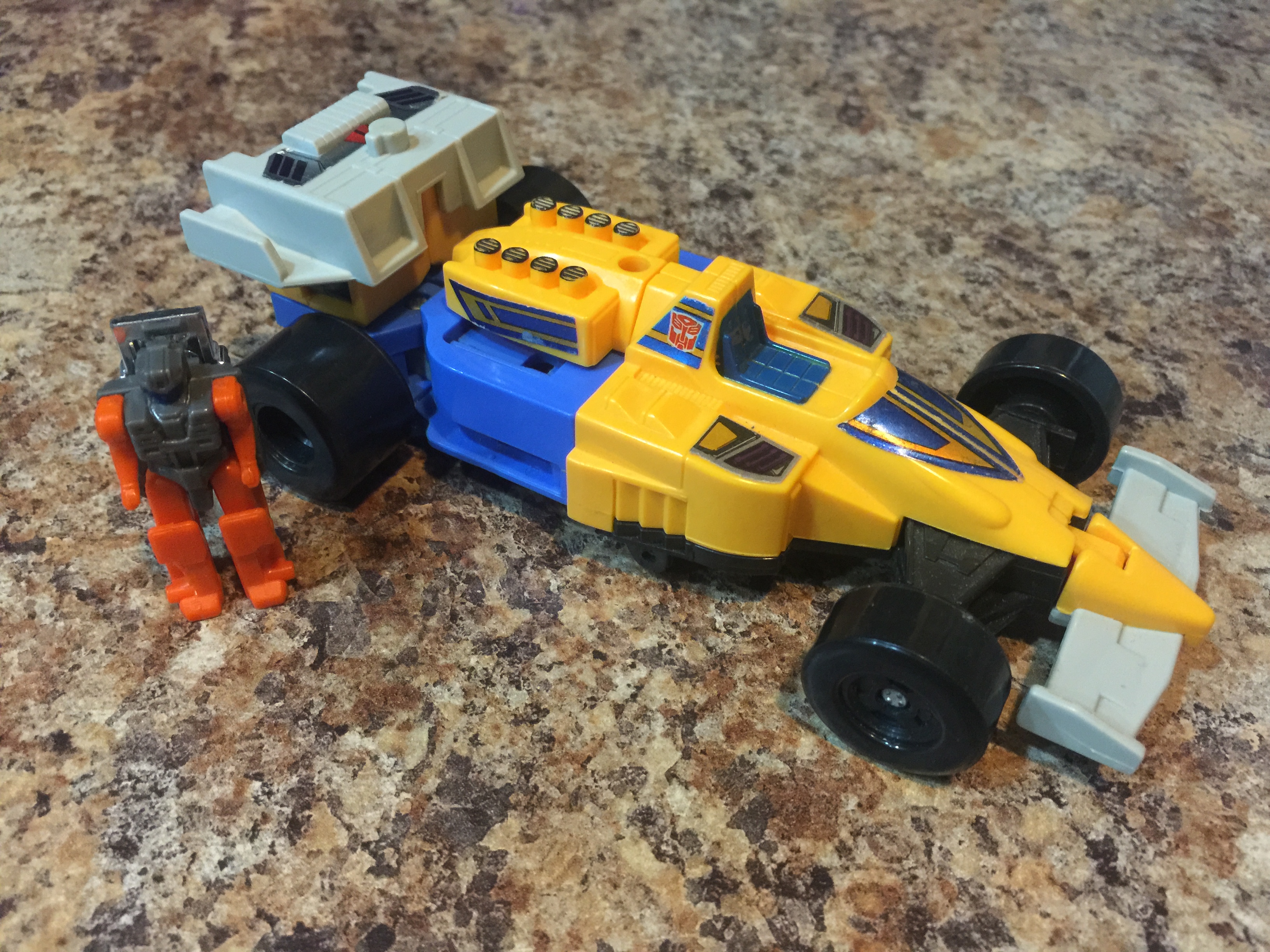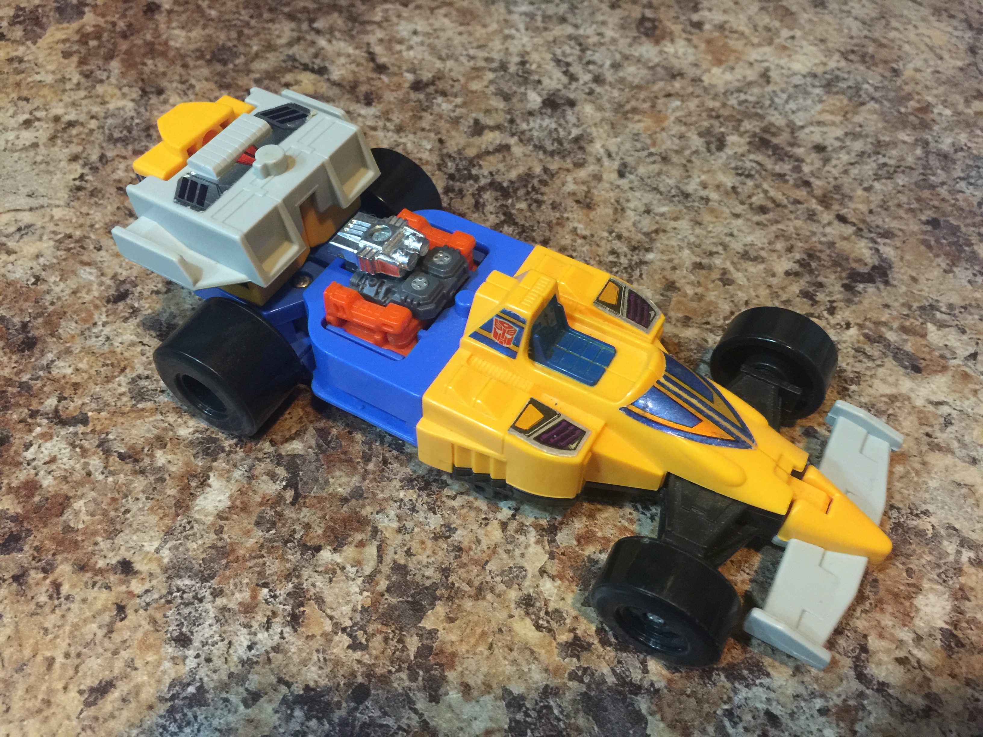 ** Got Slapdash in October 2015 on a good deal from a local seller I met on eBay. He was incomplete at purchase, but already worked to fix that. He came with his Powermaster Lube, Engine and Rear Spoiler. He was missing his Laser gun, but I purchased one off of eBay, and now is complete.**
