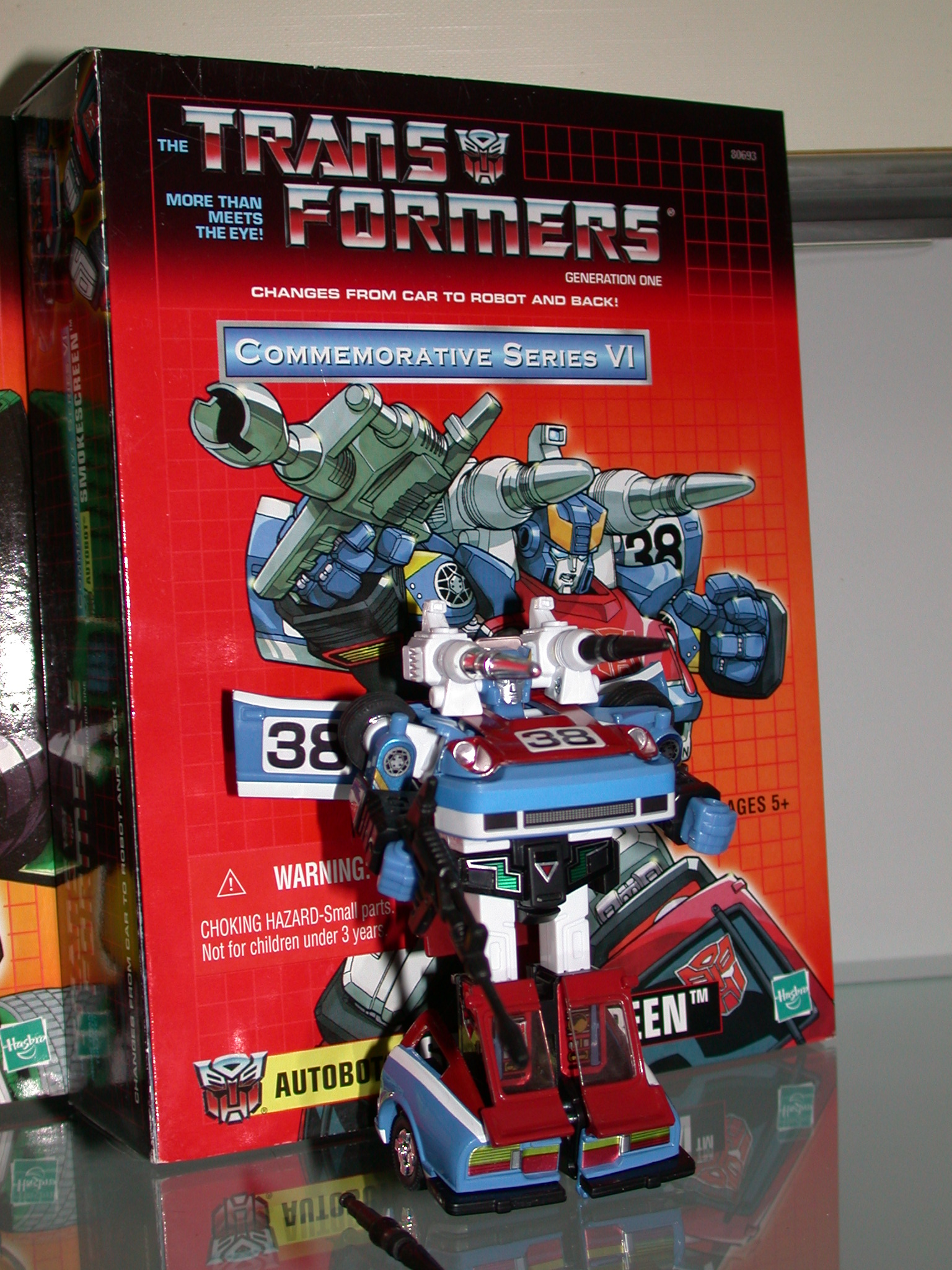 **Smokescreen is one of the commemorative reissues from Toys R Us. Great addition to my collection, but it is disappointing that Toys R Us reissued it with black missiles instead of the chrome ones. You can see that he has one chrome missile in the picture, but that is because I replaced one of the reissues with an originals I purchased separately. I did this with other reissues as well. More pictures to come.**