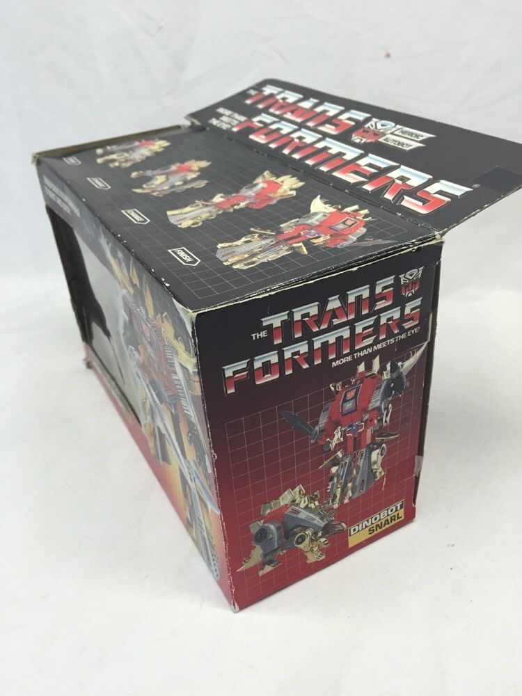 **I got Snarl in August 2015 on a good deal eBay purchase. The Dinobots have been late to my collection mostly due to their popularity, therefore expensive cost of purchase. I just have decided to keep my eyes open for that rare deal, and this purchase of Snarl is one such deal. He wasn't complete as of time of purchase, but came with his box, unused sticker sheet, Electron cannon and rocket pod. He was missing his three rockets and Energo Sword. He is in very great cosmetic condition though he does have loose pieces. As my Dinobots go, he is in the best condition of any I own as of his purchase date.