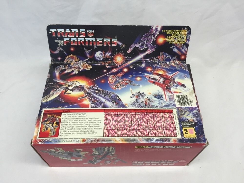 Profile: An Autobot of few words and fewer opinions, Snarl grudgingly follows the orders of Dinobot leader Grimlockand leaves the thinking to others. He's generally unhappy and a loner, and his uncommunicative nature only adds to his feelings of isolation. Only the thrill of battle can elevate his spirits. In fact, few of his comrades experience the joyous heights that Snarl attains while locked in mortal combat. But for him war is an all too brief respite from the twin devils that haunt his miserable existence: the ungainly dinosaur form the Ark has bestowed upon him and the knowledge he may never see his beloved Cybertron again.