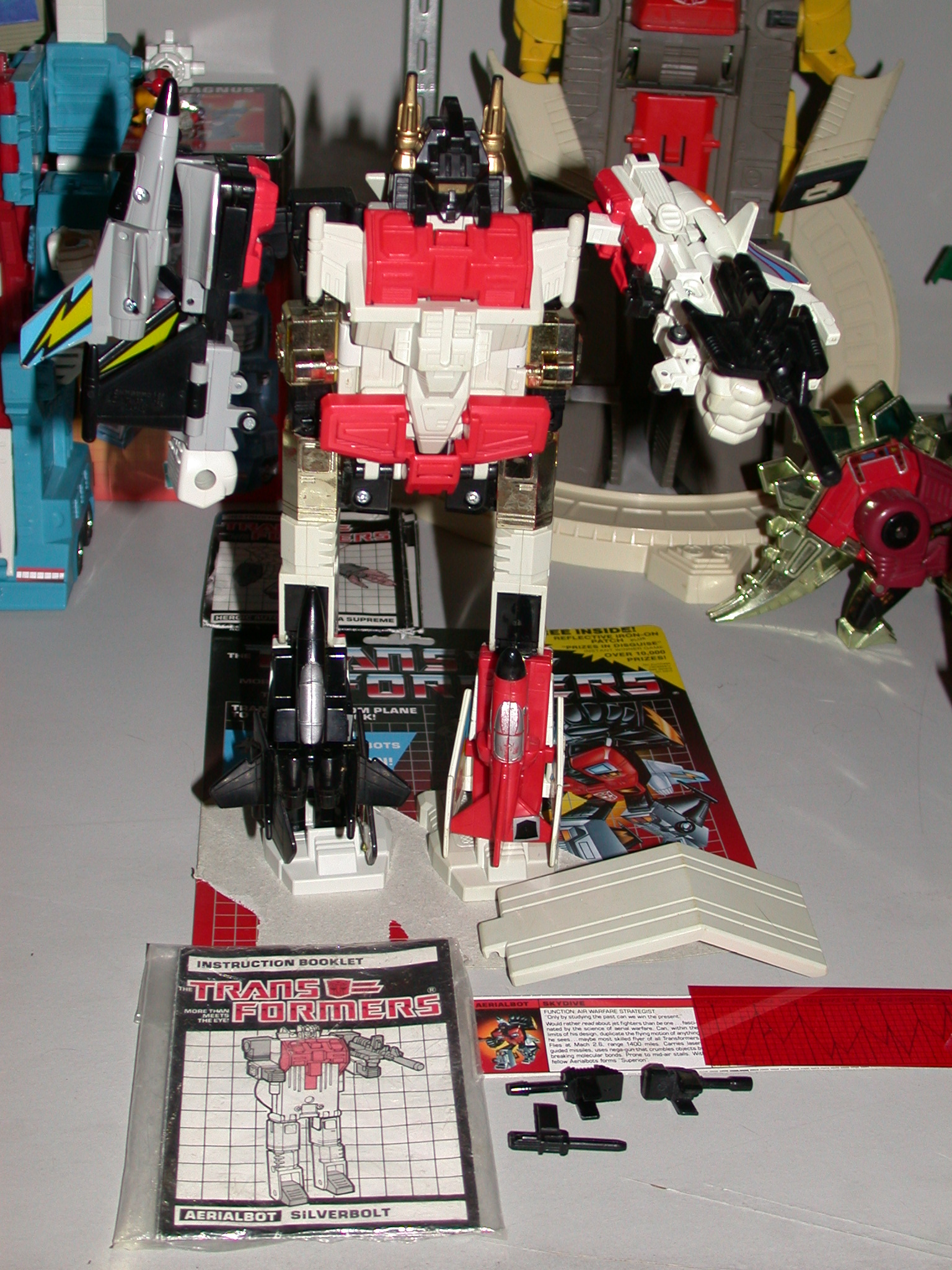 ** Superion has been probably my biggest Transformers vice throughout the years. First off, I got Silverbolt, Air Raid, Fireflight and Slingshot through a trade with a kid at school many years ago for Decepticon cassettes. I will admit they were in decent shape when I got them, and all in all, I thought they were cool, but were missing both Skydive, as well as some of the parts. It was frustrating having an almost complete Superion, but no complete. This was all before eBay, or even the internet, so I really knew no way of tracking the rest down.