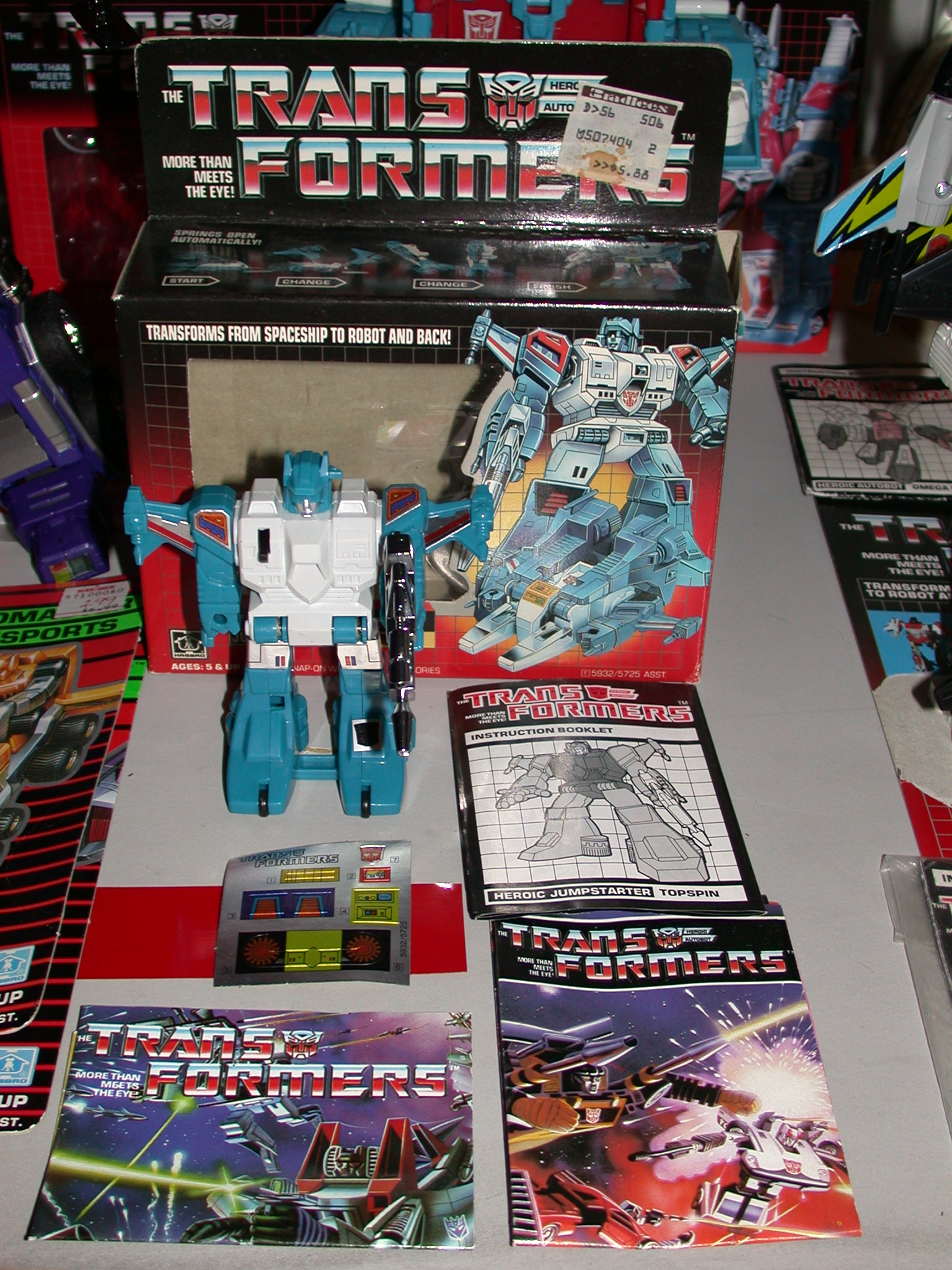 As anyone who has shopped on Ebay for Transformers knows, Jumpstarters can not be given away on the site. So besides the one I had as A kid, I have picked up two more. I have one that is mint and complete with his box, instructions and weapon, the Particle Beam Rifle. I also picked up another one before that just for its box, even though it was a bit worn. I did buy a set of labels from Repro-labels, and took apart my original and cleaned it so that I could make it look nice again. Unfortunately, I bought the labels before they offered them precut, and I have been reluctant to break out the cutting tools and ruin the sheet. I need to do that soon though.