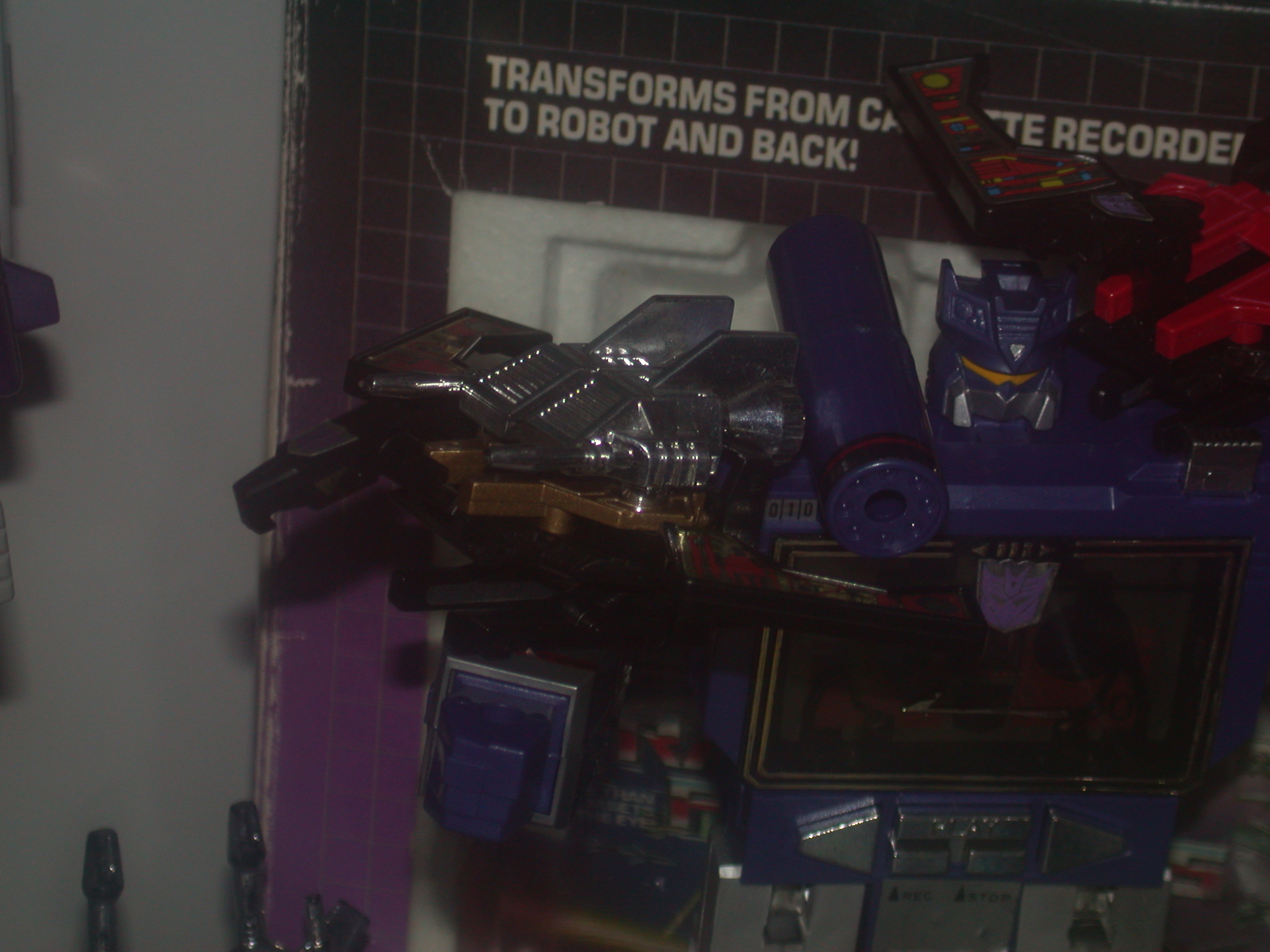 **Below is the picture of my Buzzsaw. Also is a picture of my personal Soundwave, kind of the crown jewel of my collection, due to him being my one original in almost perfect condition. While not in perfect shape itself, I still have the box and styro-foam in great condition. I have all of his weapons including two of the original missiles still on the tree, and the used sticker sheet. His included Buzzsaw is also perfect, including his stickers and weapons.**