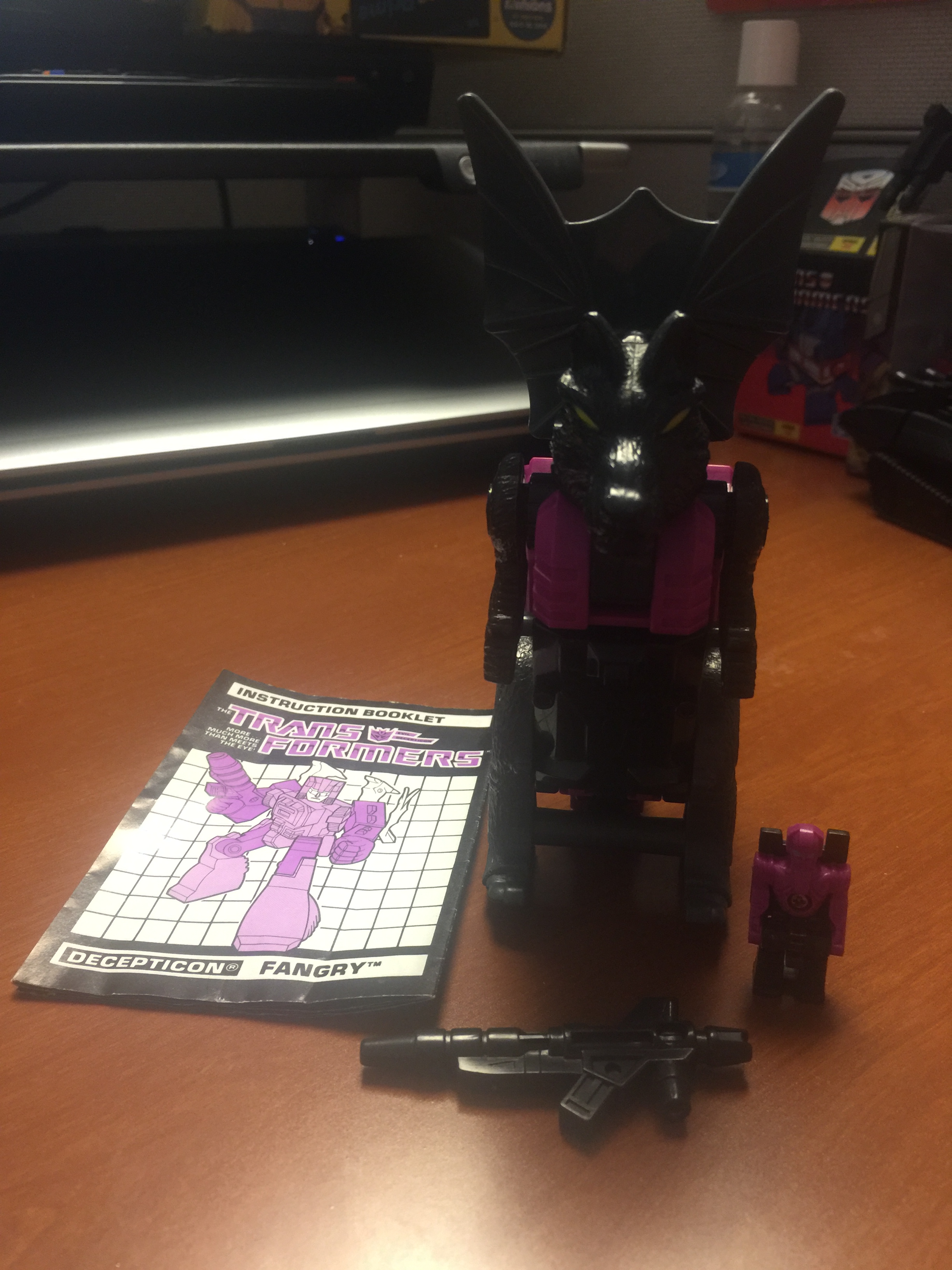 ** Got Fangry in March 2016 on eBay. He is complete and came with his Headmaster Brisko, his Wings/Shield ,his Ion Pulse Gun, and his instructions.**