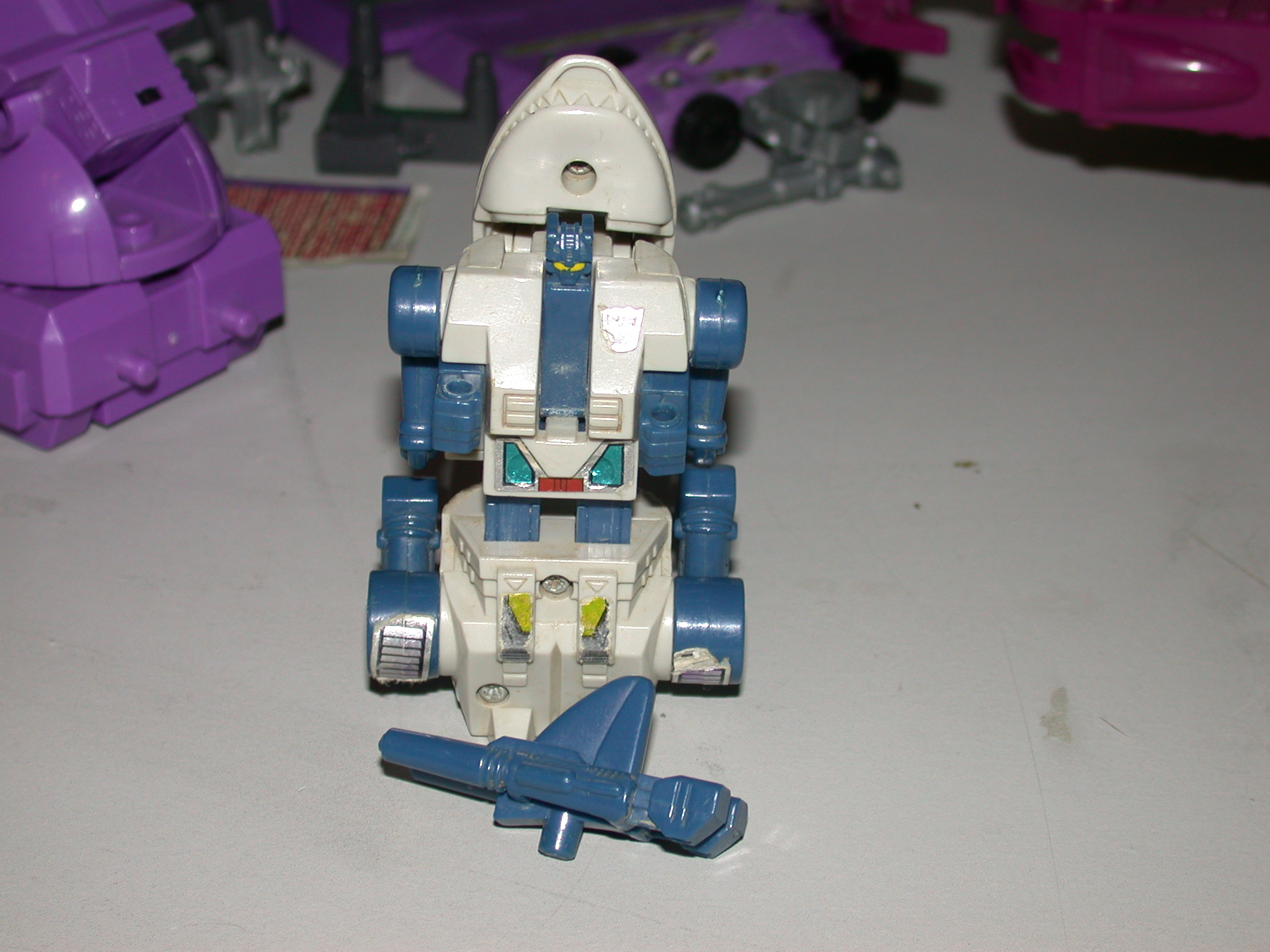 **Rippersnapper IS PART OF THE TERRORCONS i GOT AS A COMPLETE SET FROM A FRIEND A WHILE BACK. aS FOR MY COMBINER SETS, THEY PROBABLY HAVE MORE WEAR THAN ANY. Rippersnapper HAS MODERATE PLAY AND STICKER WEAR, BUT DOES COME WITH one of HIS WEAPONs, the Cyclone Gun. Missing the Twin Missile Launcher. This guy being white, is very dirty looking in his grooves. Hope to improve that when I get new labels for him and clean him up. HE also has minor corrosion on his metal parts.**