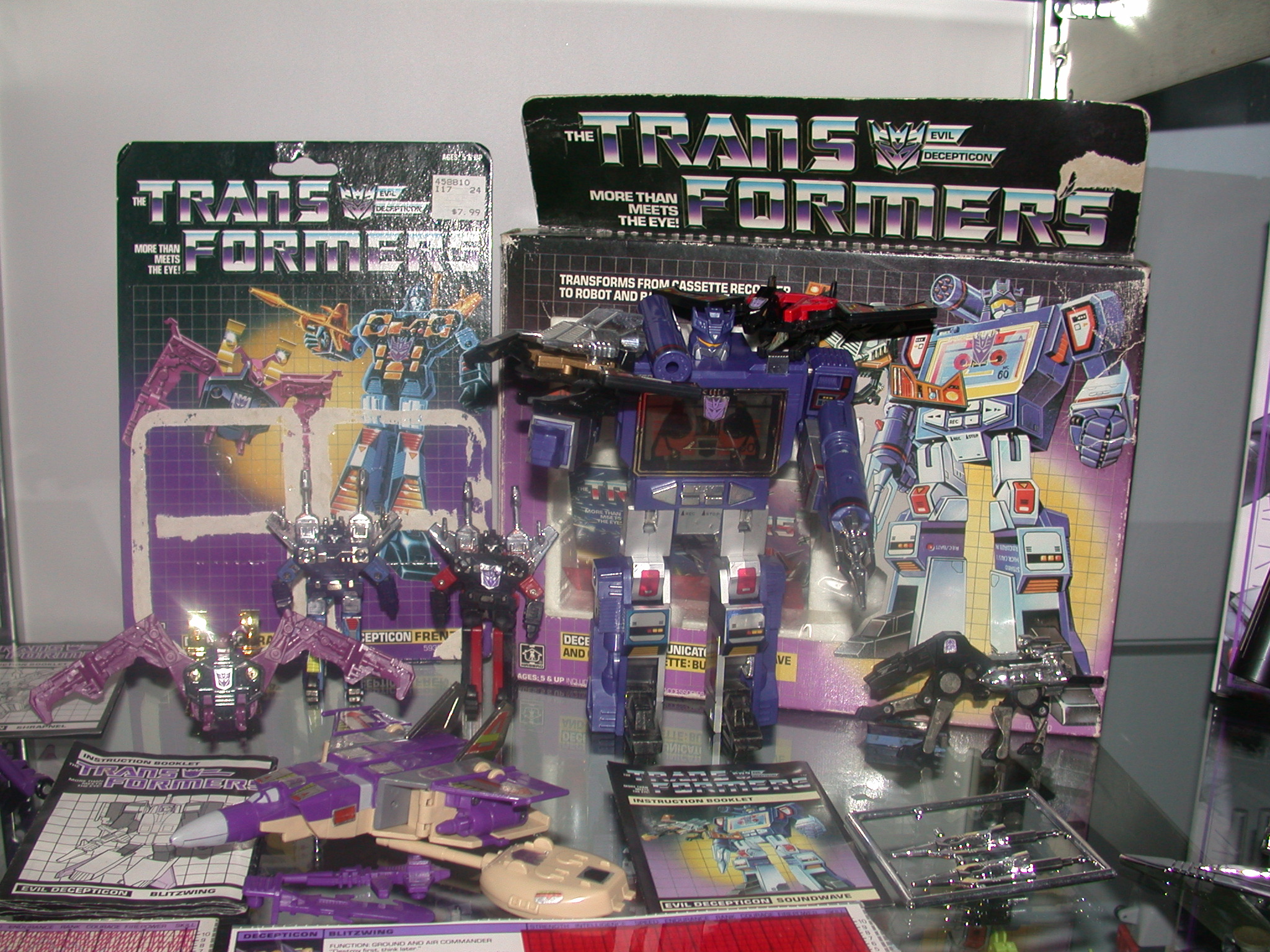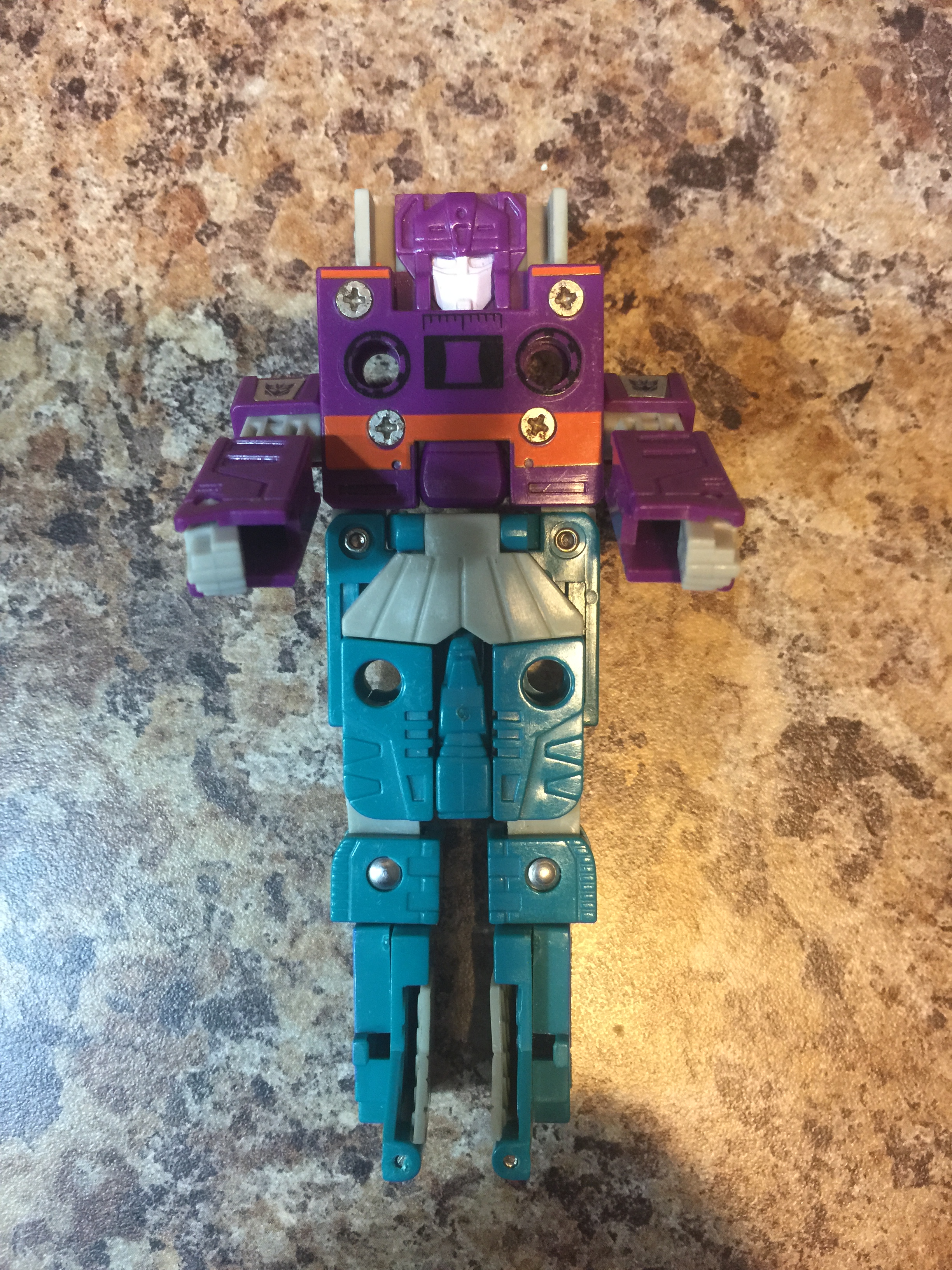 Never stops talking except to refill his fuel tank. Knows over 250 Earth and 6300 alien languages, but never has anything important to say in any of them. Other Decepticons often threaten to rip out his vocal circuitry and wrap it around his beak to shut him up. Carries two deafening high decibel sonic boomers. Combines with Beastbox to form robot Squawkbox. | |||||||