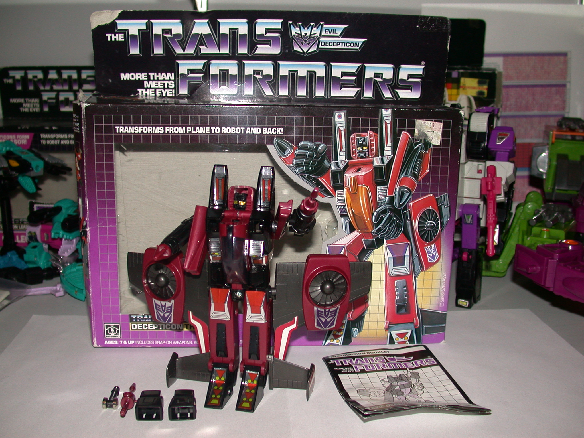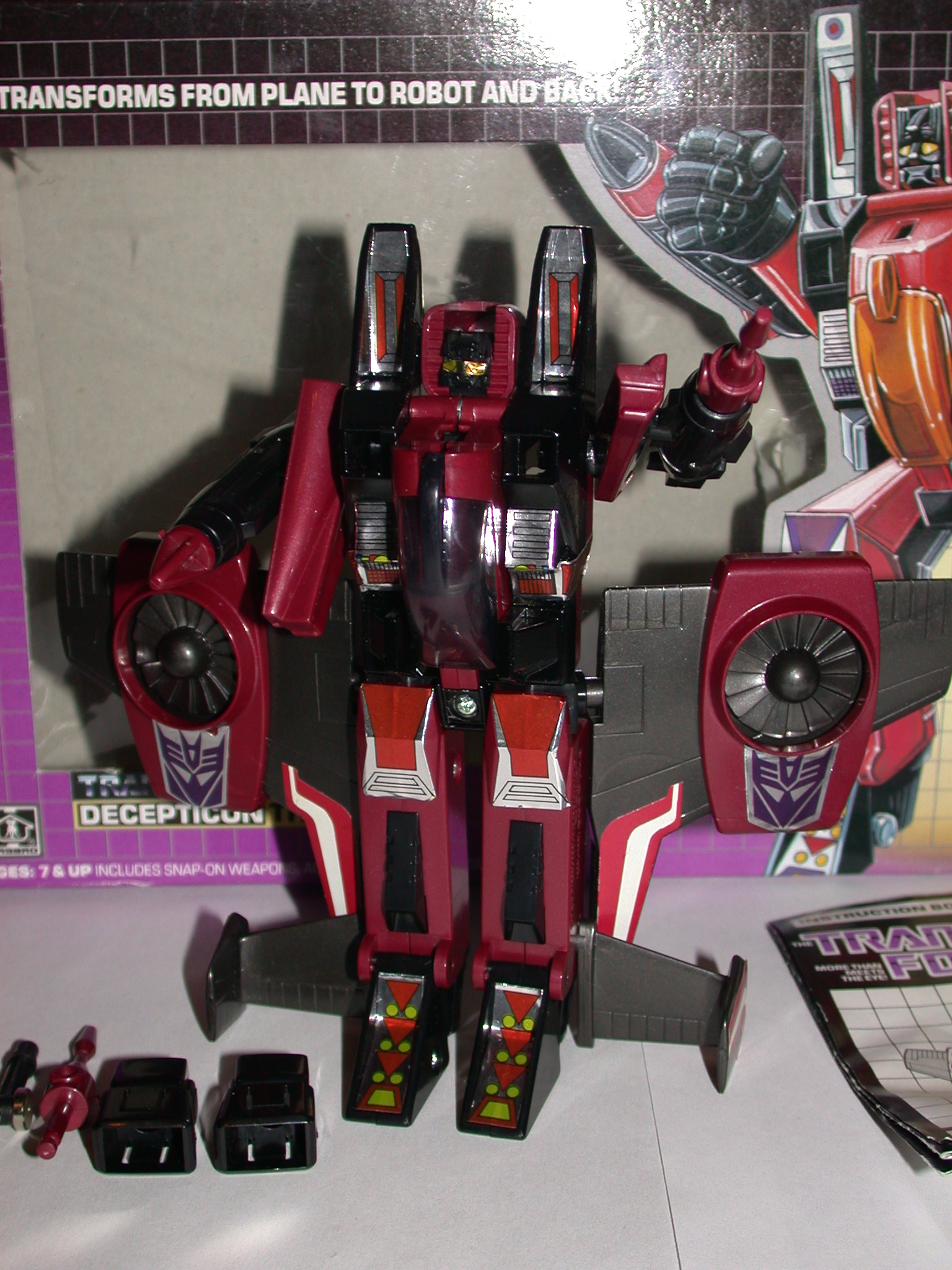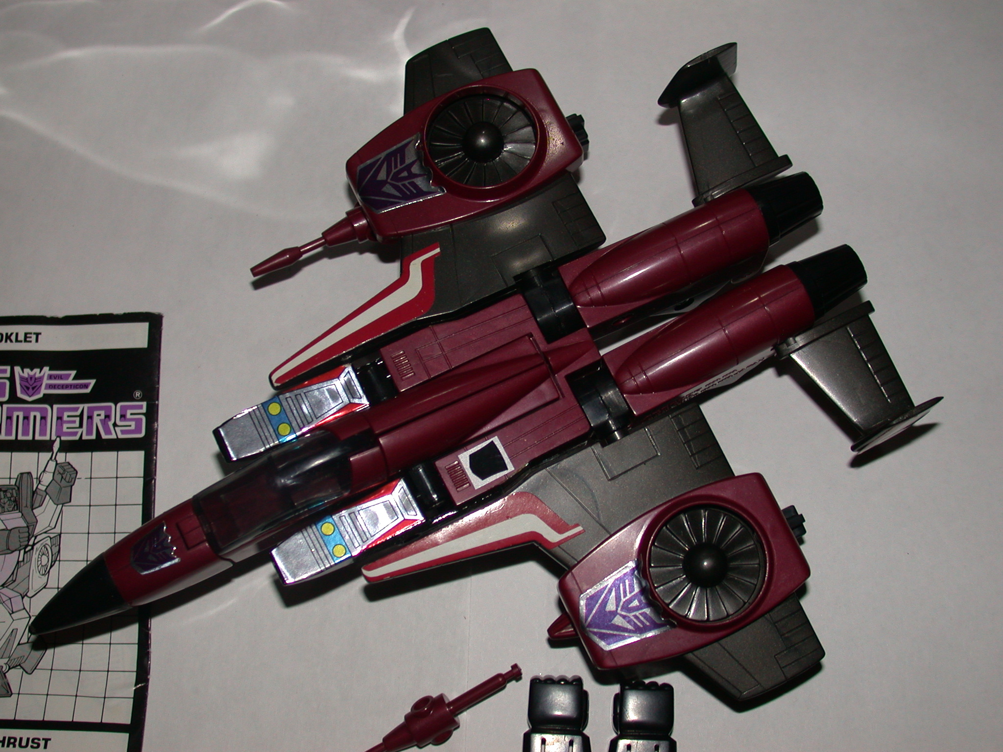 **thrust is a recent addition to my collection, and my one true original jet (not a reissue). I was always a big fans of the jets, so its great to finally add him to my collection. I especially liked how his wings were a different style than the first three that Hasbro had issued, but he was also cooler in my opinion in looks, than Dirge and Ramjet. I went a little crazy with pictures because I like his wings so much. He is my favorite Jet as far as structure goes, and only has Starscream (character wise) as competition. I will also attach a picture of the worlds smallest version I have of him, when I get a chance.**