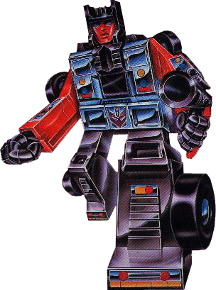 Look out motorists -- he exults in the accidents he causes! Driving recklessly, screaming and laughing. Some comrades think it's an act, others really know he's as nuts as he appears. Fears quiet, prone to tire blow-outs. In car mode goes up to 250mph with amazing maneuverability. In robot mode, his scattershot gun sprays laser beams over wide areas. Combines with fellow Stunticons to form "Menasor". | |||||||