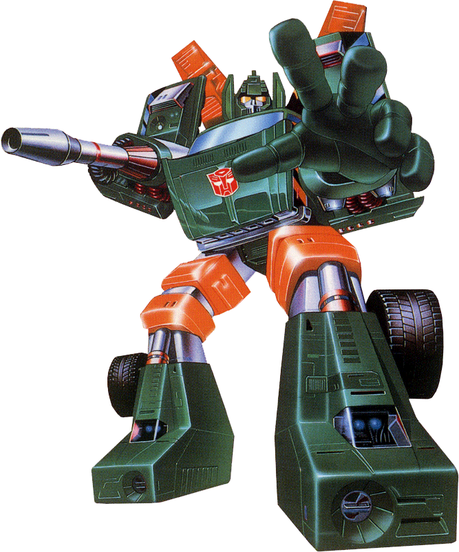 "No exceptions!" -- All Autobots must submit to his maintenance schedule... knows they must operate at peak efficiency in battle. Jovial, enjoys job and is good at it -- will find any problem, from engine overhaul to smallest leaky gasket. As tow truck, hauls 40,000 lbs. As robot, very strong -- launches heat-seeking missiles from wrist sockets. Full spectrum multi-sensor behind his head determines an objects' composistion, density, tensile strength, energy properties.