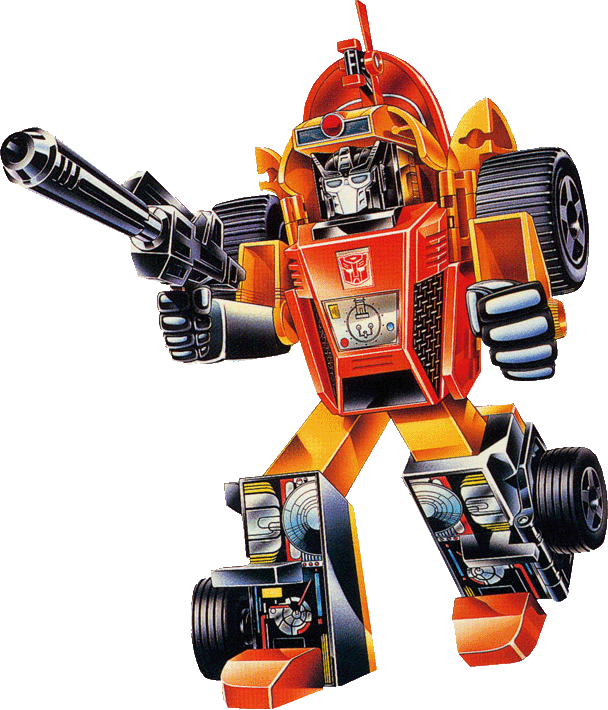 Always takes death-defying risks. Anything less than dangerous is boring to him. In battle, gets close enough to count the bolts in Decepticon armor plates. As helicopter and buggy, he's adept at using rotors and exhaust to whip up blinding clouds of dust and sand. Extremely maneuverable. Carries sandblaster gun that shoots streams of silicate particles that can erode anything.