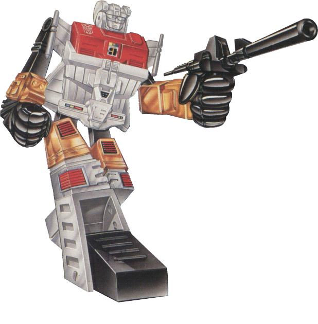 Scared of heights. Brave, grimly determined warrior, but he struggles to maintain that image in order to hide his phobia. Selected by Optimus Prime to command so he'd be too busy worrying about others to worry about himself. In jet mode, speed of Mach 1.9, range 4500 miles. Carries electrostatic battery that releases electric bolt of up to 150,000 volts through his nose cone. Uses electrostatic discharger rifle in robot mode. Combines with other Aerialbots to form "Superion". | |||||||