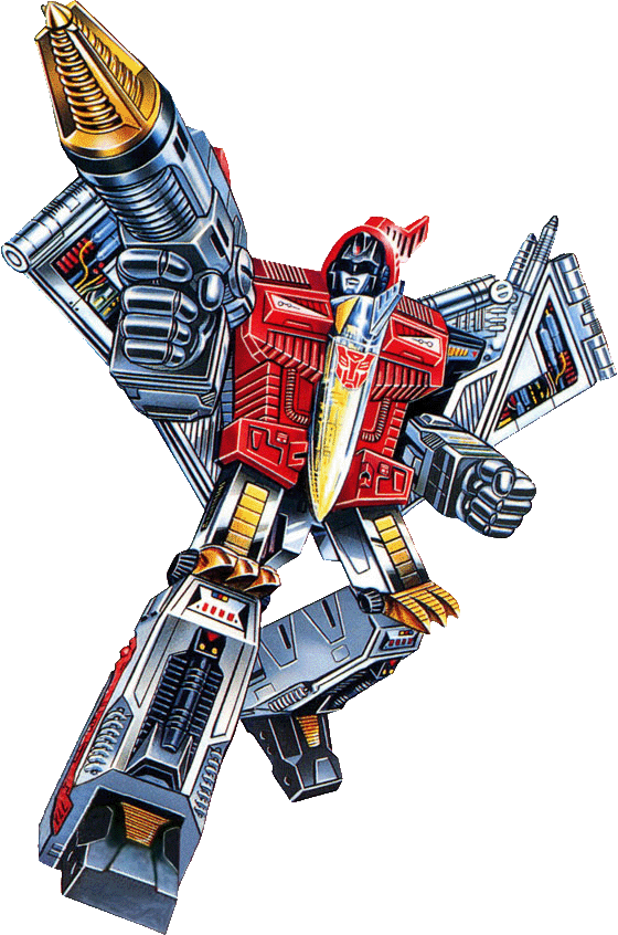 Abilities: In flying mode, Swoop can soar up to 250 mph. Under each wing he carries an air-to-air missile launcher. Each missile is the equivalent of 5000 lbs. of TNT. Although the missiles have a range of 8 miles and are very accurate, Swoop's specialty is swooping down to low altitudes and releasing them virtually point blank at their targets, and then speeding away. In Autobot mode he can also use the launchers, as well as a thermal sword, which, by heating up to temperatures of 4000 degrees Centigrade, can slice through most materials by melting through them as it passes.