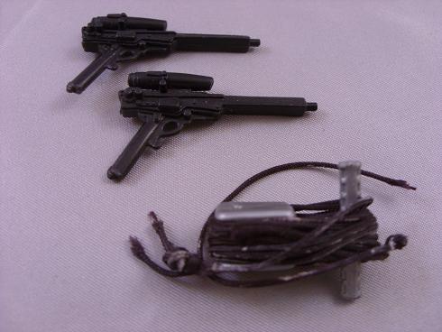 My Personal Notes: I always found these guys crazy.  As a kid, I thought they really looked cool, and had a cool position being the head of the Crimson Guard.  But I have to admit, that even as a kid, I thought it was a little too over the top how they acted with each other.  So I really liked them, but at the same time cringed.  Mine are complete with their rifles and with the swing, though the string is looking a bit messed up with all the play it got.  I have had and have enjoyed this guy since childhood.