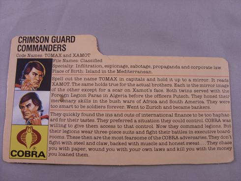 They quickly found the ins and outs of international finance to be too haphazard for their tastes. They preferred a situation they could control. COBRA was willing to give them access to that control. Now they command legions. But their legions wear three-piece suits and fight their battles in executive board rooms. These then are the most fearsome of the COBRA adversaries. They don't fight with steel and claw, backed with muscle and honest sweat... They chase you with paper, wound you with your own laws and kill you with the money you loaned them.