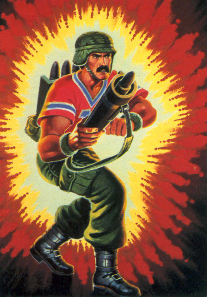Code Name: BAZOOKA Bazooka was driving Abrams tank in the "Third Horde" (Third Armored Div.) when he came to the realization that an illiterate farmer armed with a $200 disposable rocket launcher could knock out a million dollar tank with less than two weeks training. He put in for a transfer immediately. Training: Advanced Infantry School, Fort Benning; Armor School, Fort Knox. Qualified Expert: Dragon Anti-Tank Missile, Milan System, LAW rocket, Recoilless rifle, LAW System and all Warsaw Pact RPG systems. Subject is also EOD (Explosive Ordnance Disposal) qualified up to the tac-op category. Subject is a decisive fast-thinker with all the instincts of a natural survivor.