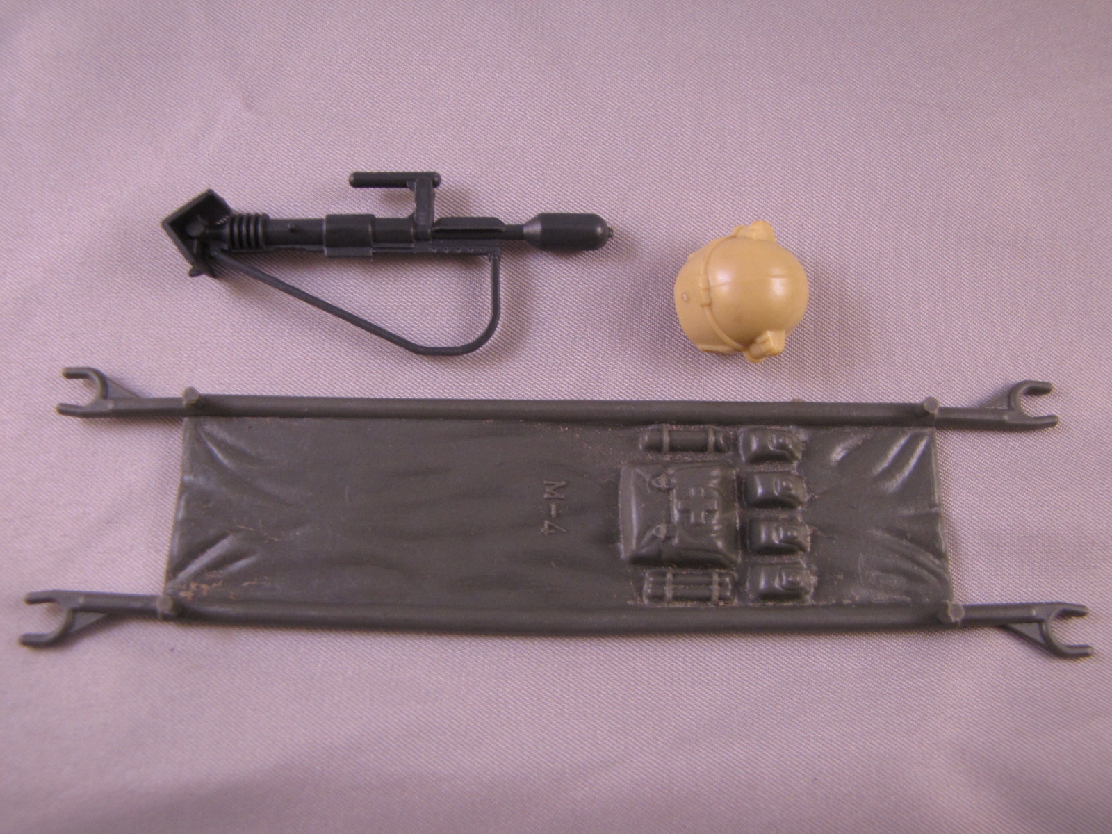 My Personal Notes: I have had Doc since I was a kid, and have kept him in good shape and complete over the years. He has his helmet, flare launcher, stretcher and file card. |